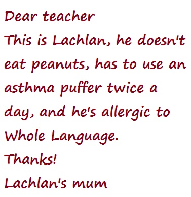 It’s hard to be sure that risk factor 1 doesn’t apply to your child, making him or her effectively allergic to whole language/balanced literacy teaching approaches.