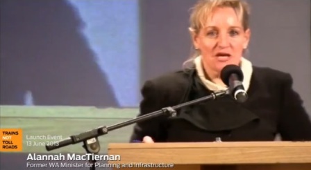 I was already an Alannah MacTiernan fan because I'm involved in the Trains Not Toll Roads campaign, which invited her to speak at a public meeting here in inner Melbourne a few months ago. The featured image for this blog post is from the video of that talk, click here if you want to watch the whole 23 minutes, she makes complete sense on transport and planning too.