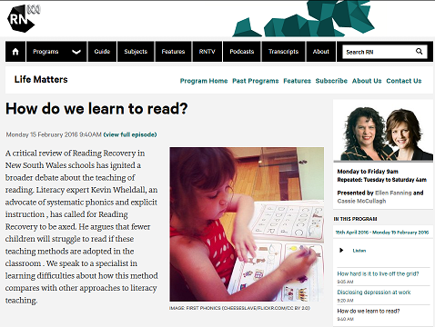The excellent Lorraine Hammond, President of Learning Difficulties Australia, was on Radio National’s Life Matters program this morning, with the unenviable task of explaining how children learn to read in ten minutes.