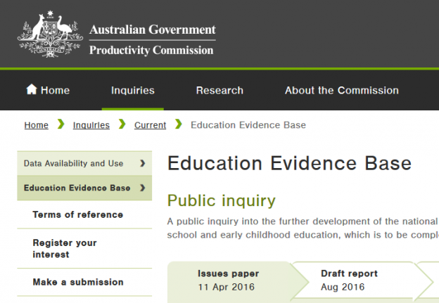 The Productivity Commission is holding an inquiry into the national evidence base for school and early childhood education.