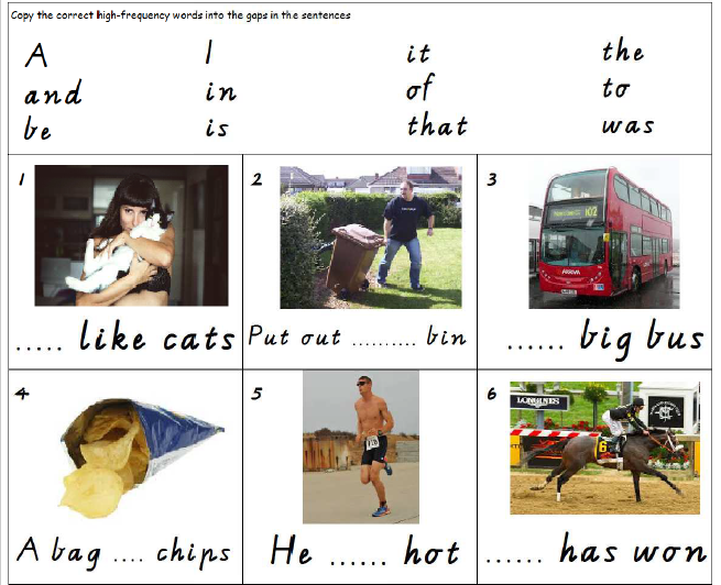 I hope this activity helps to encourage teachers and others working with literacy beginners and strugglers to postpone work on high-frequency words until children have learnt the basics of how to sound out simple words.
