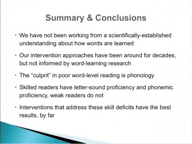 This is a summary of the second half of an online video seminar entitled “Assessment and Highly Effective Intervention in Light of Advances in Understanding Word-Level Reading” (the first half I recently summarised here), which I hope encourages you to watch the whole thing.