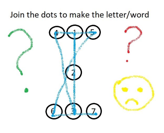 Next I was told to “complete the dot to dot to make the letter”, and there were numbered dots on the screen in roughly this layout: