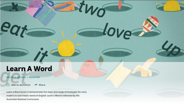 Please don’t show children in your care the Learn A Word series on ABC iView. It teaches children to rote-memorise the appearance of words, recite letter names, and “take a photo with your eyes” of words.